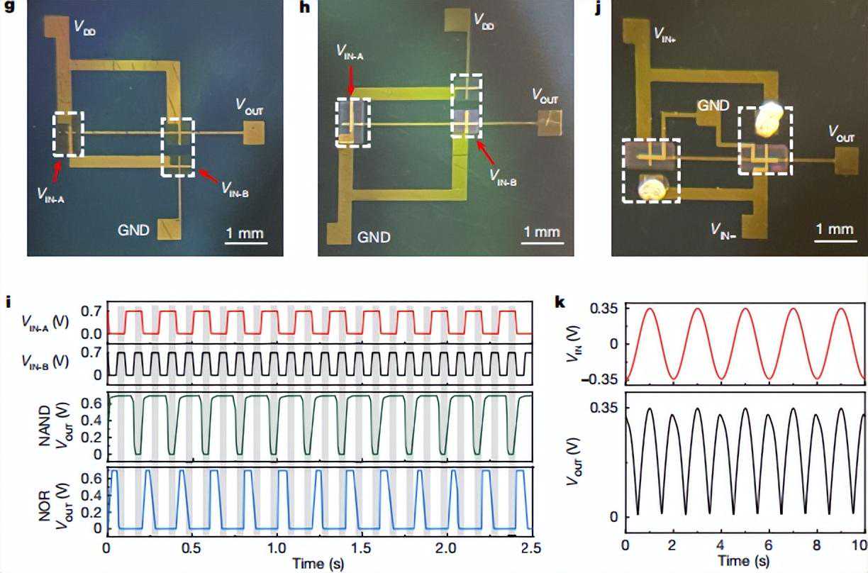 黄伟表示,器件结构设计得益于新材料的合成,其特点在于它能够同时导电子(空穴)及离子,也就是说,它的工作原理类似神经突触,电学信号转化为化学信号,然后再转为电学信号的器件。