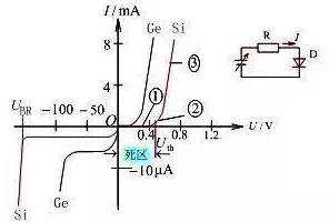 理想开关模型和恒压降模型:理想模型指的是在二极管正向偏置时,其管压降为0,而当其反向偏置时,认为它的电阻为无穷大,电流为零,就是截止。恒压降模型是说当二极管导通以后,其管压降为恒定值,硅管为0.7V,锗管0.5V。