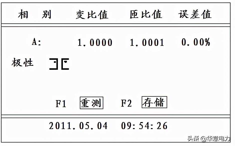 ①如果直接测量变比,此时可以直接按F1键直接进入测试,显示“正在测试”,测试结果显示如图4所示。