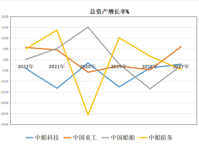 总资产增长率排名第一,中船防务,年均增长0.97%。