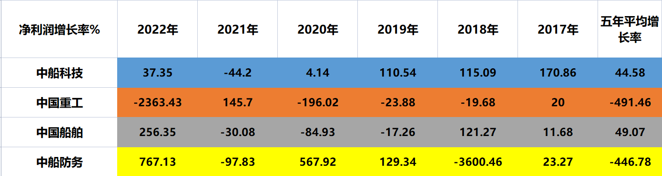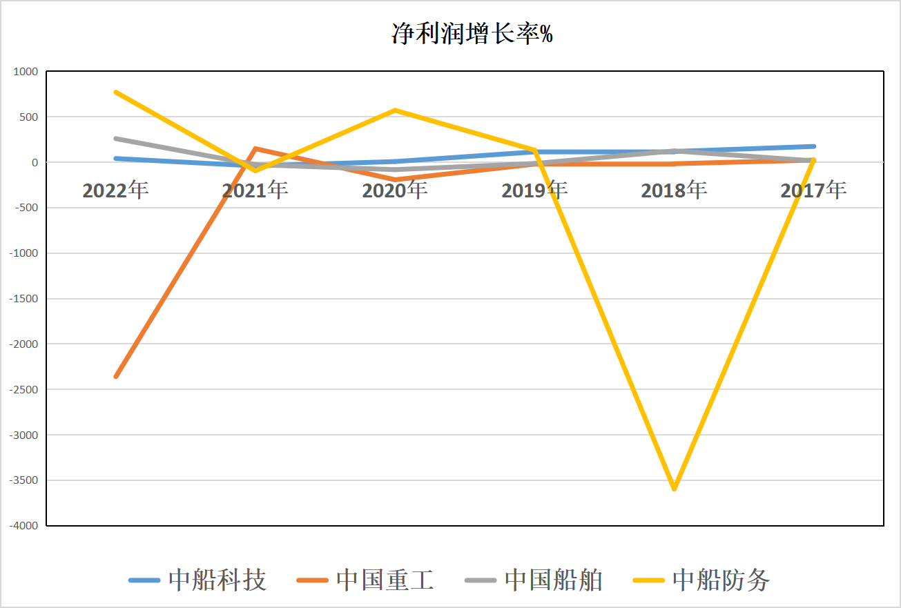 其中,中船防务和中国重工,均是某一年利润同比出现大幅下降,造成利润增长率下降。