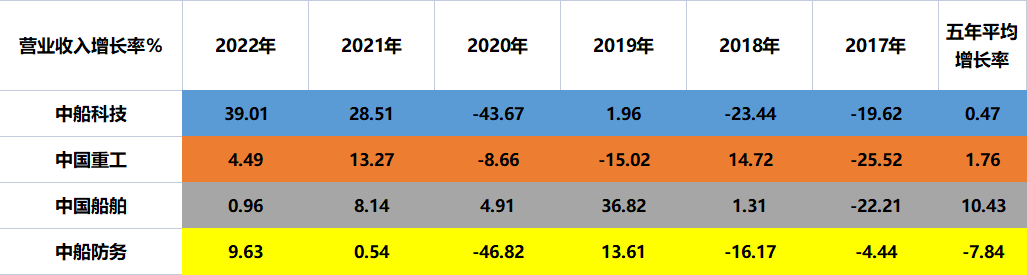 营业收入增长率排名第一,中国船舶,年均增长10.43%,
