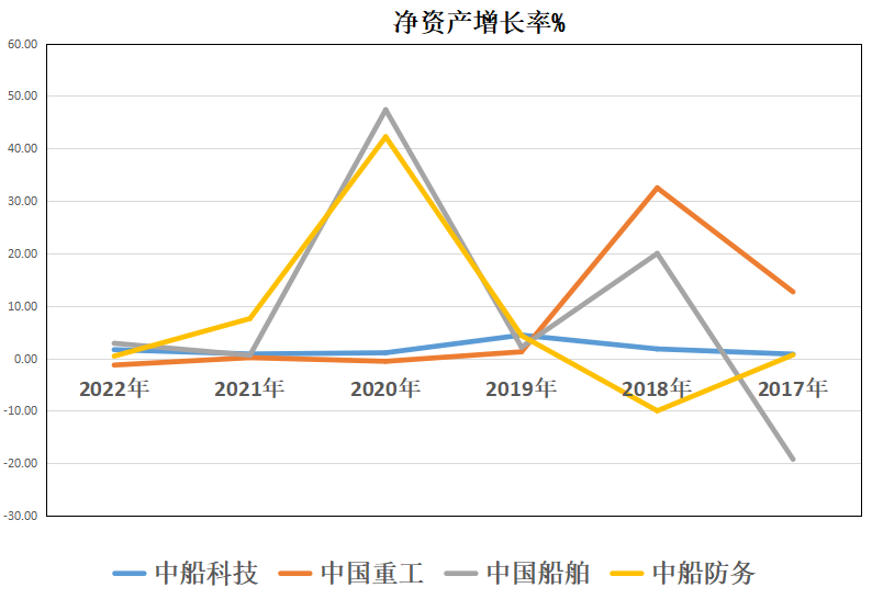 可以看到,虽然中船系,总资产增长率很低,但净资产增长率却明显比总资产增长率高,这主要是有两方面原因,