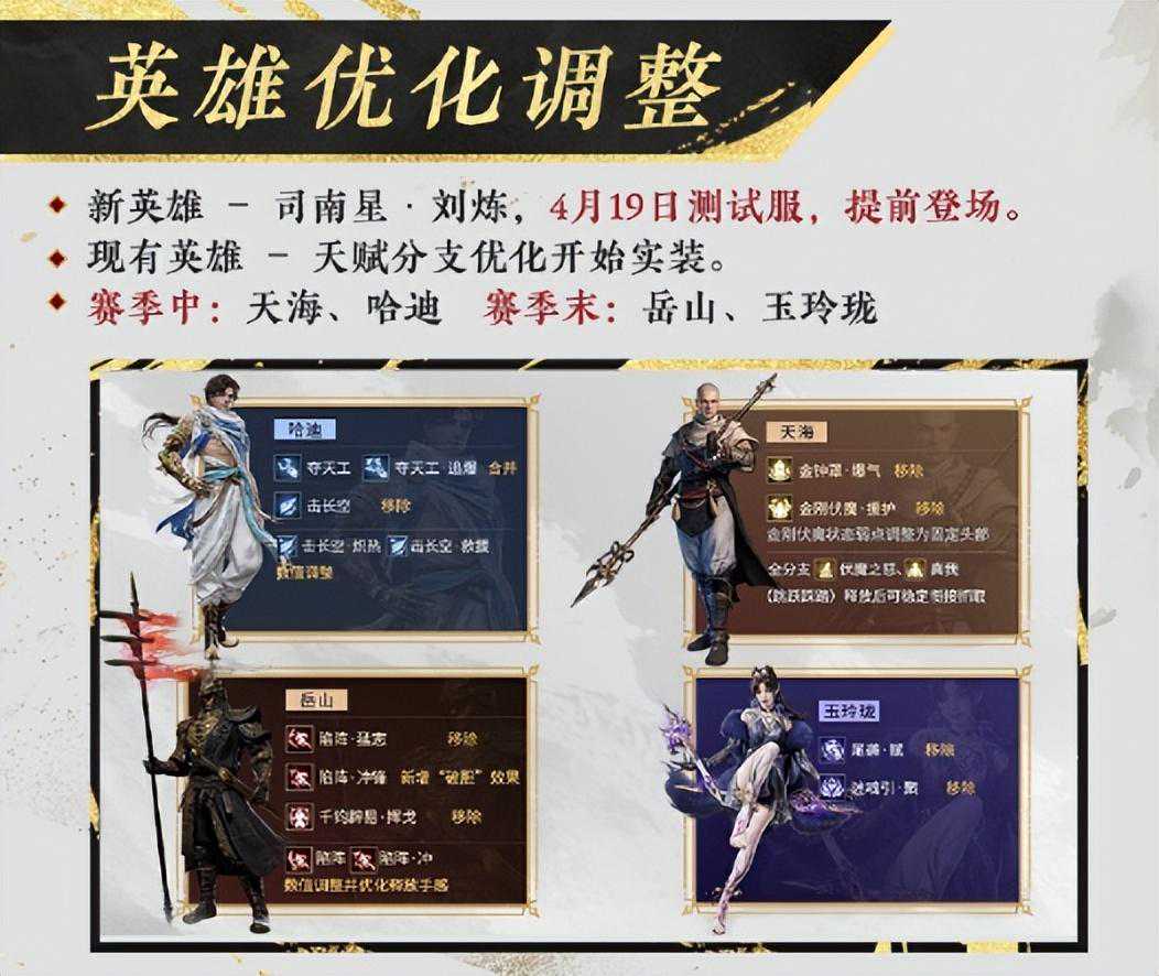 同时新赛季中还会上线新英雄司南星·刘栋,现有英雄优化则会在赛季中和赛季末实装。