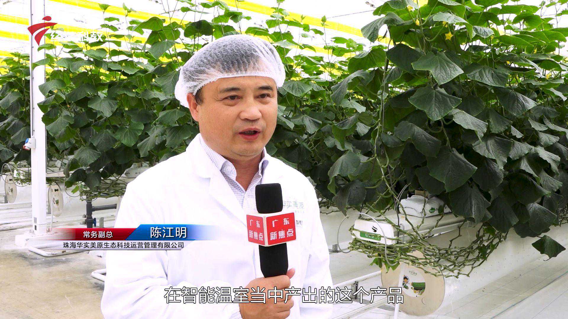 珠海华实美原生态科技运营管理有限公司常务副总陈江明表示:在智能温室当中产出的这个产品是安全营养的,我们采用的是无土栽培,全生物链防治,我们的产品是没有农残和没有这个重金属,我们的产品一年四季可以达到标准化供应。