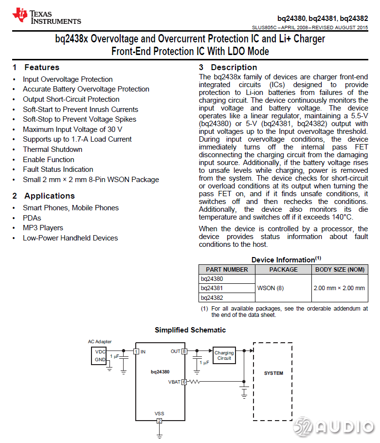 TIBQ24381过压/过流保护IC和锂离子充电器前端保护IC,具有LDO模式。
