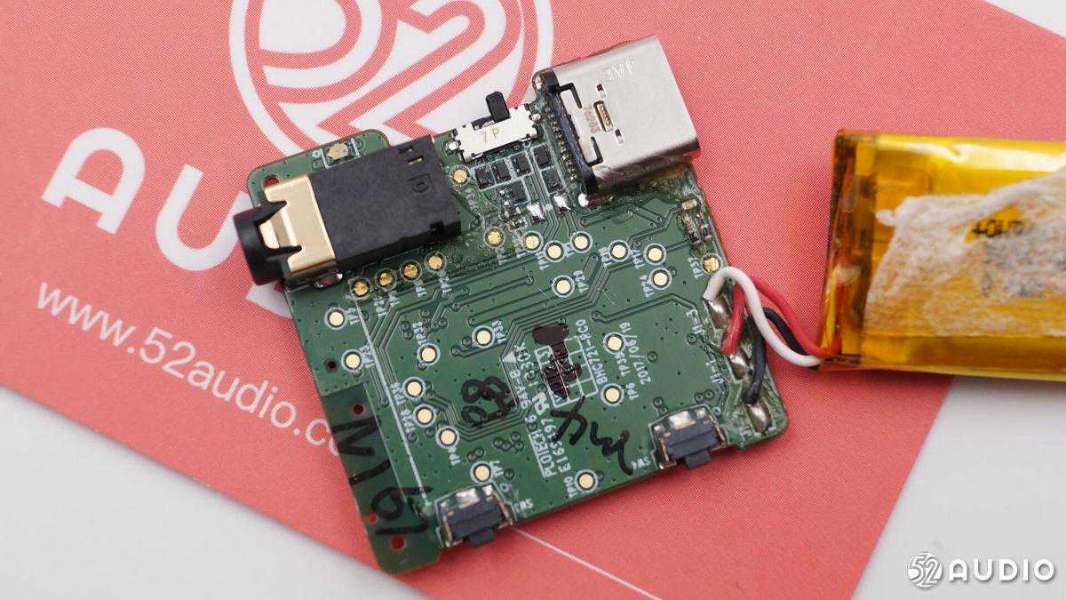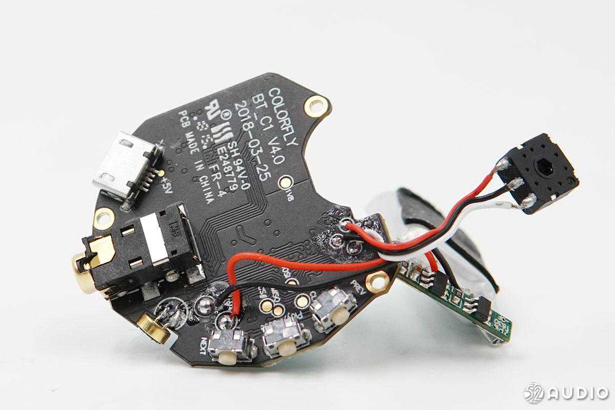电路板正面,据我爱音频网拆解分析,左上角是蓝牙天线,以小板单独焊接。