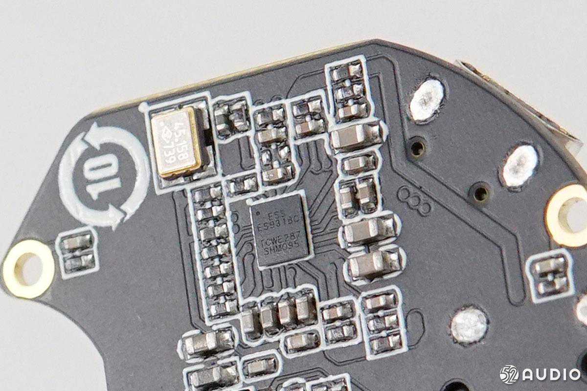 ESSES9318DAC,集成耳机驱动器,可以直接驱动耳机。DAC周围布满了电容。这款DAC被多款高端HiFi便携设备采用。