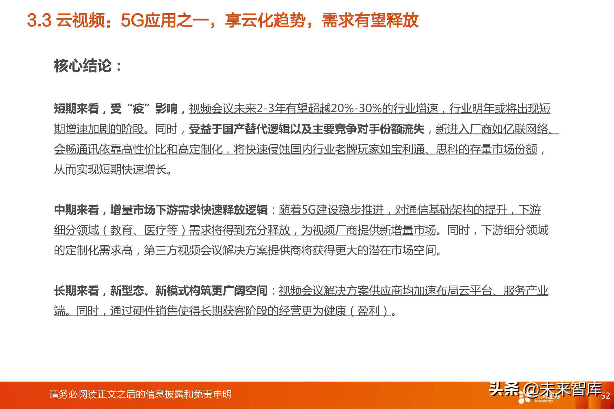 运营商产业链:以5G、10GPON等网络建设,以及流量增长带来的网络持续升级扩容,驱动整个硬件/软件/工程维护等产业链的成长;