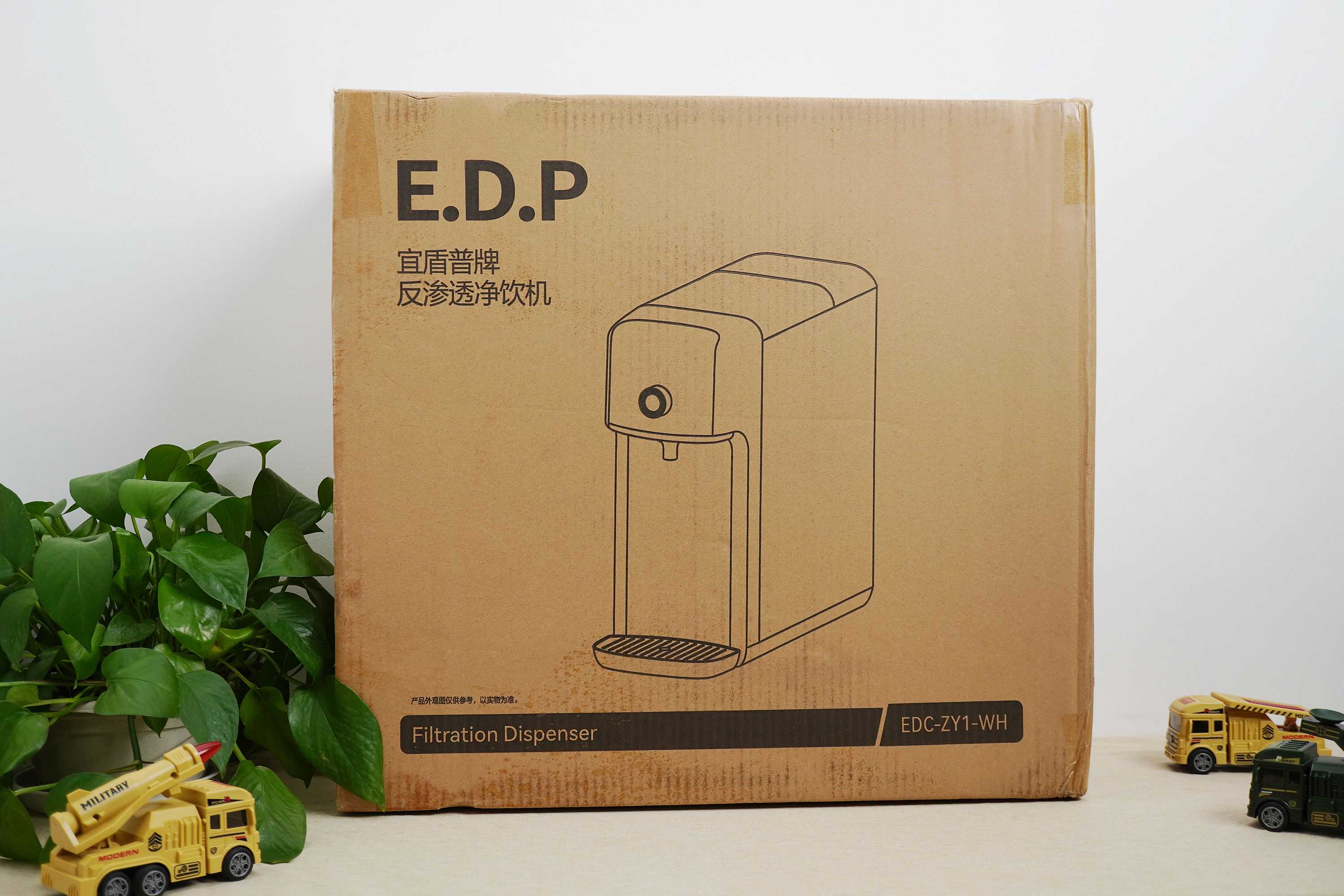 ▲宜盾普净饮机采用瓦楞纸包装,结构很瓷实,里面的机器被珍珠棉包裹,机身覆盖防尘膜。整箱重8.7kg,搬运难度不大。