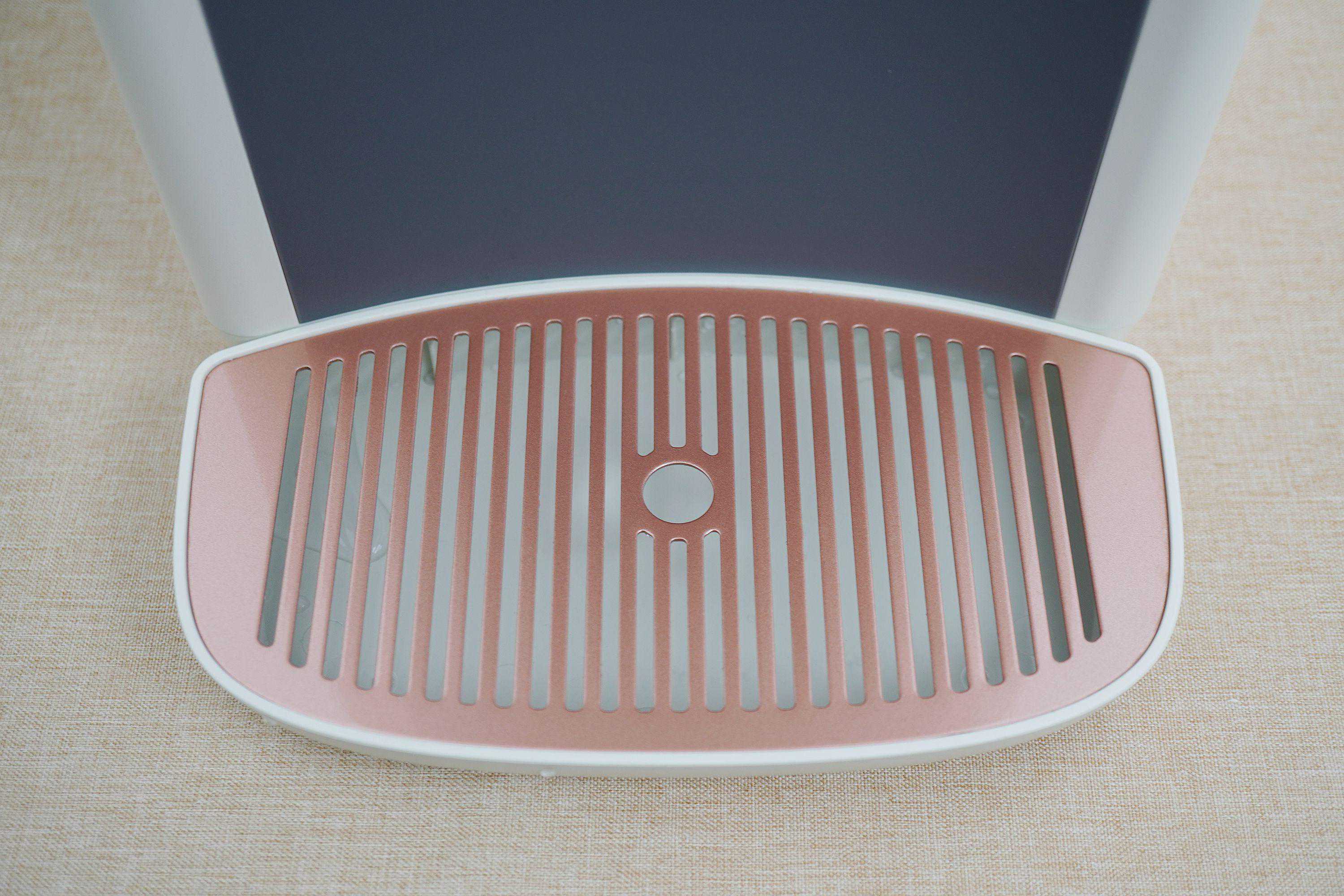 ▲接水完成后,宜盾普净饮机的出水口能够很快止流,但随主机还是配备了接水盘。接水盘的盘面和盘身是分离的,这样的话,使用日久积存污垢清洗起来也会比较方便。