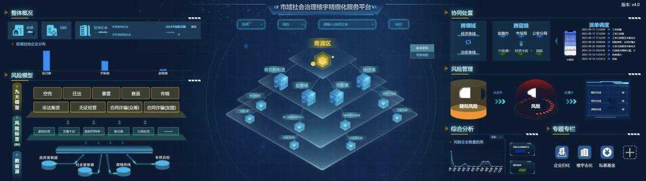 在这个过程中,数字化转型成为关键。华新镇在楼宇管理上实施了智慧化运营策略,这不仅包括在安防、物业管理等方面的改进,还包括通过数字化手段提高管理效率。为了加强对楼宇企业的监管,有效打击违法犯罪行为,华新镇建立了一套完善的风险企业智能预警和防控机制,依托于数据汇聚、数据治理和数据分析能力,打造了市域社会治理楼宇精细化服务平台。上海联通构建了三级管理、四级架构的管理体系,通过大数据和人工智能建立了一套一梁四柱的风险模型,基于一网统管的业务流实现了复杂事项的跨部门、跨领域、跨层级闭环管理,为楼宇企业风险管控和数字化运营提供了强大的技术支持。