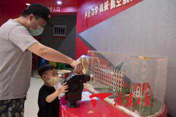 图为,一位家长带着孩子在体验风能。(记者王毅摄)