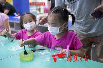 图为孩子们在尝试制作免洗洗手液。(记者王毅摄)