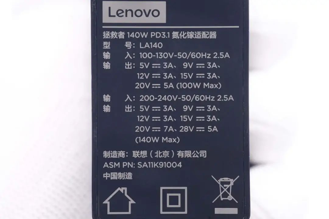 Lenovo联想联想拯救者140氮化镓快充充电器支持最高140W充电,支持协议。