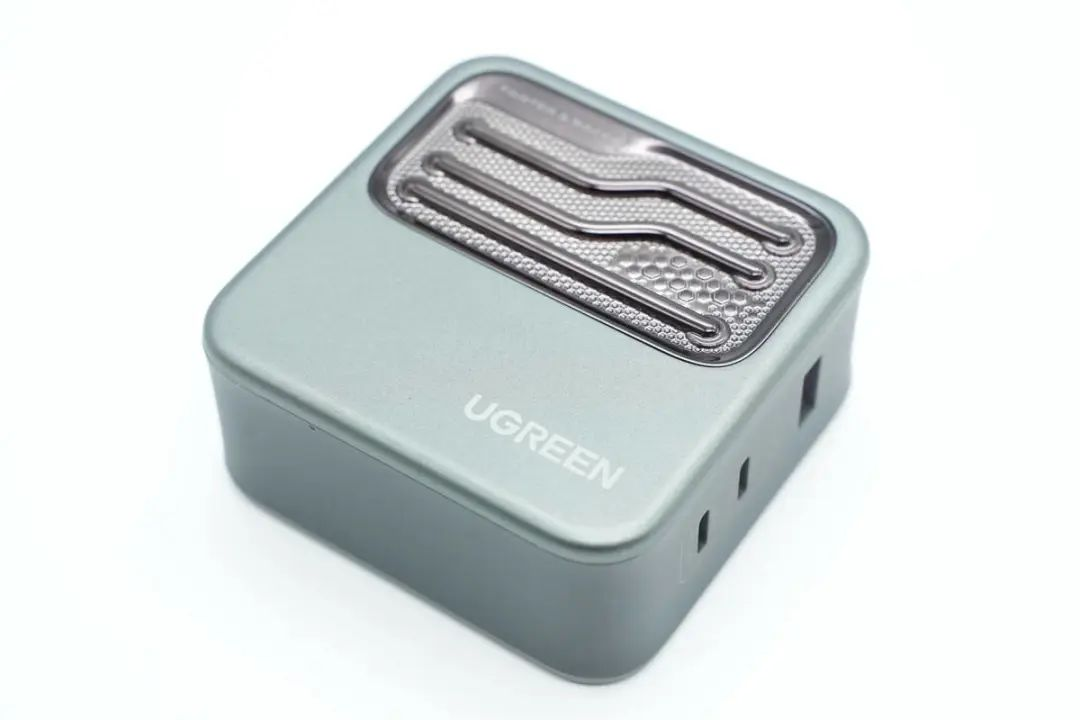 绿联这款充电器可以说是设计上先进而独特了,军绿色的外观,金属网加热管的外观设计与绿色外观结合,倒是相得益彰的感觉。侧面的3口极为难得地有着平滑干净的周边,实在是优雅的设计。整体上比较圆滑,让人想要拿在手中把玩。