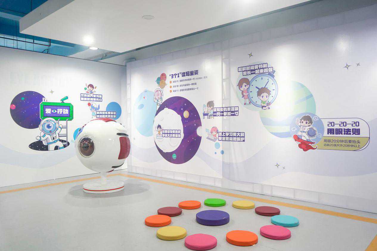 本次科普展共分为五大区域——形象区、科普区、互动区、讲演区以及检查区。除展示青少年儿童常见的眼睛热门问题以及眼睛科普知识外,展区还设有各种互动装置,为参展家长以及青少年儿童带来一场沉浸式的探索眼睛奥秘之旅。
