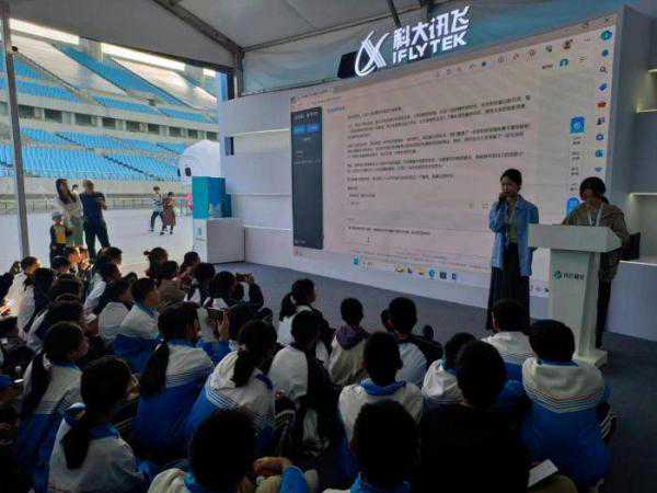 会展现场,导游带领师生参观了科大讯飞展区,了解科大讯飞在人工智能领域的最新技术成果,及该成果在教育、医疗、工业、汽车、智能家居等领域的应用。