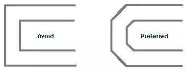差分对布线时,应避免急转弯(90°)(参见图23)。