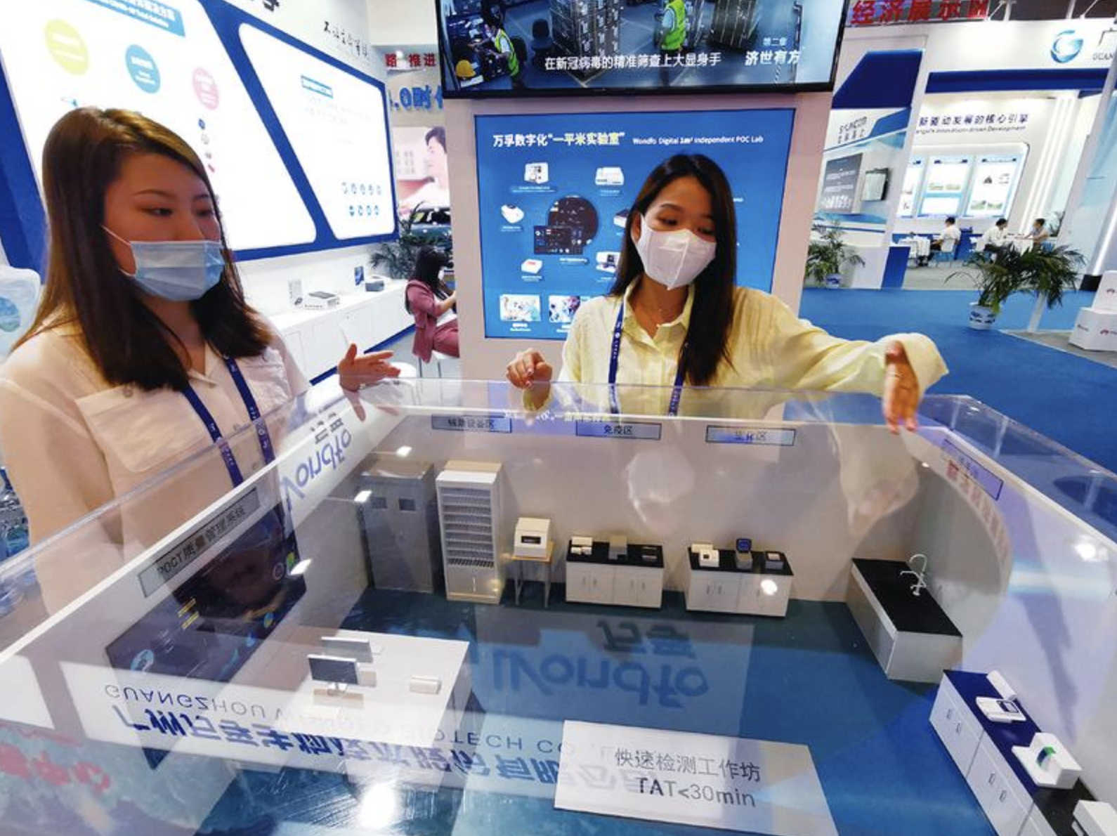 广州万孚生物技术股份有限公司展区展出的万孚数字化“一平方米实验室”,也是本次先进技术展展出的抗疫“黑科技”之一。