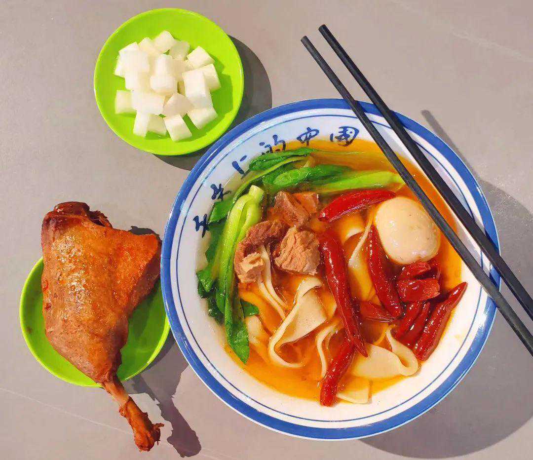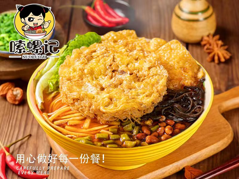 搭配上酸笋、腐竹、绿豆芽等丰富的配菜
