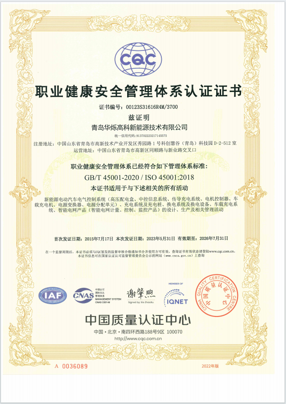 青岛华烁高科先后通过了ISO9001质量管理体系认证、ISO14001环境管理体系认证、ISO45001职业健康安全管理体系认证、IATF16949管理体系认证等,严格实施科学、严谨、规范的产品开发、生产和品质管理、市场服务体系,确保为市场客户提供最优质产品。