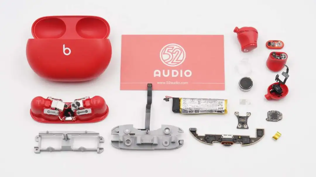 内部结构配置上,BeatsStudioBuds采用Type-C接口,满足更多人群的使用需求。内置国光电子400mAh电池,主板元器件均使用硬质胶水覆盖,以保护内部电路,同时也无法获悉了内部芯片信息。