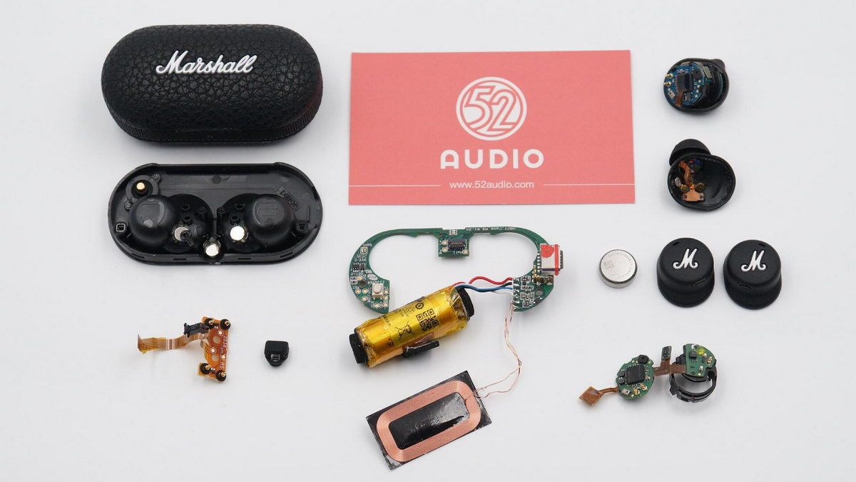 内部电路方面,MarshallModeII充电盒内置500mAh电池,由微源LP5305芯片提供过压过流保护,无线输入采用了伏达NU1680无线电源接收器,有线采用了思远半导体SY8801电源管理IC,以及意法半导体STM32L011G4超低功耗ArmCortex-M0+MCU等。