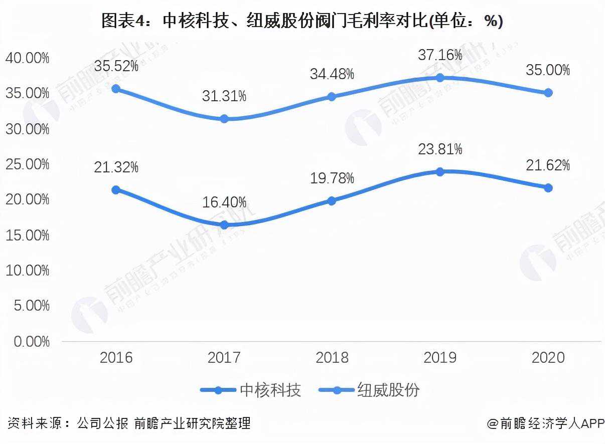 尽管中核科技在营业收入方面与纽威股份差距较大,但考虑到双方下游目标行业有较大差异,双方不构成直接产品竞争,而是分别在不同阀门制造领域做到了国内顶尖水平。因此,前瞻认为,纽威股份与中核科技在阀门制造行业各有优势。