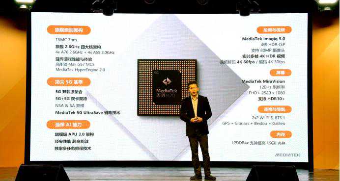 据官方表示,天玑820处理器使用目前较强的7nm工艺制造,且继承了全球最顶尖的5G调制解频器,为搭载的终端带来更好的省电方案、更低的功耗;其搭载了旗舰级多核CPU架构,在性能上将远超同级芯片。同时,天玑820还搭载了高能效的独立AI处理器。
