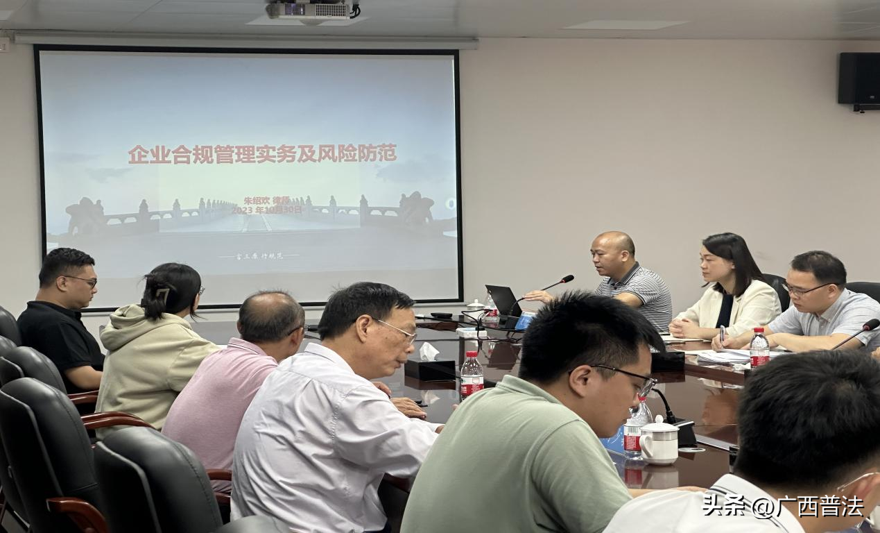 此次专题讲座邀请了贵港市“八五”普法讲师团成员、广西三原律师事务所朱绍欢律师主讲。朱律师针对企业在经营管理过程中遇到的法律问题,列举身边真实的案件,向企业经营管理人员和职工主讲了《企业合规管理实务及风险防范》,重点就合规管理与发展趋势、反腐败及反商业贿赂、完善企业合规管理、合规事件的危机处理和合规事件导致的争议案件处理,如何规范企业的经营合同、在订立合同时应当注意哪些法律问题等。朱律师的讲座深入浅出、形象生动,进一步帮助企业增强合规管理的法律意识,促使企业领导深刻认识到合规管理的重要性、必要性,进一步完善企业的各项规章制度,为企业做强做大奠定坚实的法治基础,促使职工在工作中严格遵守企业的管理,进一步促使企业领导和职工学法、懂法、守法、用法。此次法治宣讲活动,朱律师还宣讲了《法律援助法》,重点宣讲了法律援助的重要意义、形式和范围等内容,让企业职工对法律援助法有了一定的认识,进一步提高了法律援助法的知晓率。