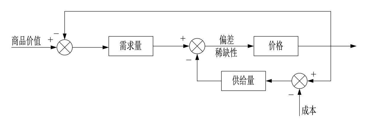 由于价格增加,利润会增加,所以供给量会增加,那么价格和供给量是正相关。于是得到了简单的均衡价格论框图(如图62所示)。
