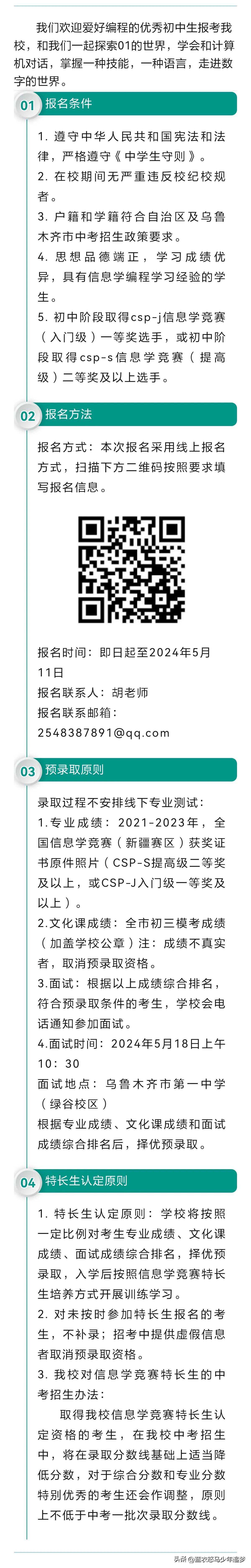 乌鲁木齐市第一中学2024年信息学竞赛、科技类特长生招生简章