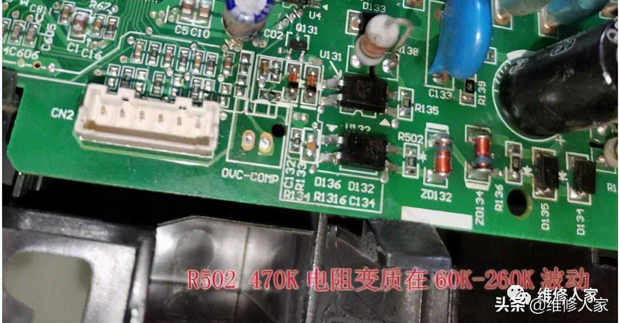 客户同意后把板子拿回店里修,借助自己店里的格力内风机当负载,上电开机测量去风机的电压有112V,此时电机运转慢,电流声也大,测电容1.0UF正常,本能反应是板子上的AQH2223坏了,更换依然H6。