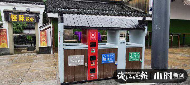 现在走在美食街上,再也看不到露天堆放的大型垃圾桶。沿街人行道上增设了5组带有“江南水墨”风格的四分类垃圾桶,满足前来享受饕餮盛宴的食客分类投放需求。