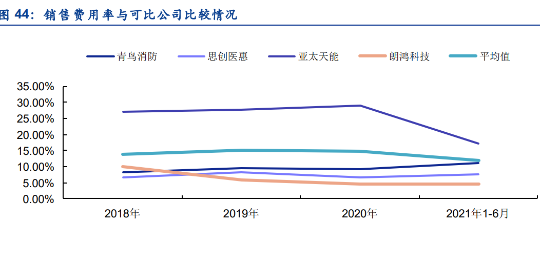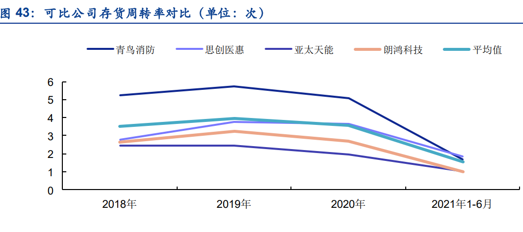 从营业收入规模方面来看,朗鸿科技2018年至2021年6月的营业收入分别为10364.90万元、14478.05万元、12051.44万元和7294.20万元,对比同行业可比其他公司,略低于亚太天能,远低于青鸟消防和思创医惠。青鸟消防和思创医惠的营收规模相对较大。