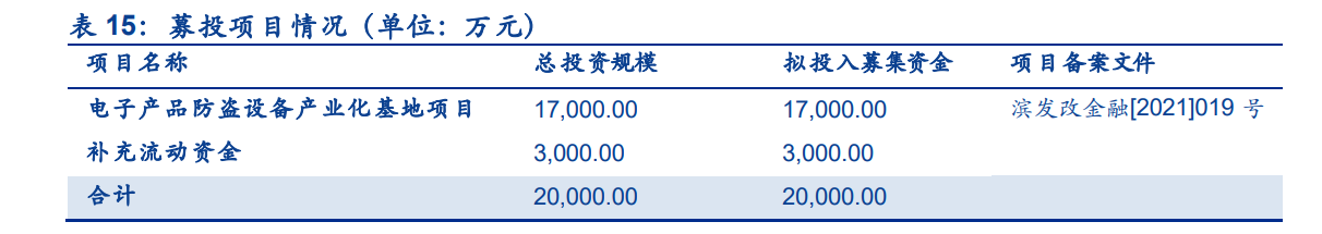1.6.募投情况:拟募集1.7亿用于电子产品防盗设备产业化基地,0.3亿补充流动资金