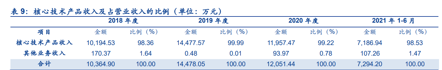 2020年度,受疫情影响,海外运输和境内外客户的自身经营受到不利影响,导致公司营业收入同比下降16.76%,2021年1-6月营收达到7294.20万元。公司营业收入包括主营业务收入和其他业务收入,其中主营业务收入主要系防盗器产品的销售收入。在2018年至2021年6月期间,各期主营业务收入分别为10,194.53万元、14,477.57万元、11,957.47万元和7,186.94万元,占营业收入比重分别为98.36%、99.99%、99.22%和98.53%,公司主营业务突出,发展趋势良好。公司其他业务收入主要系宣传物料收入、原料废料收入、代收电费、房屋租金等,占营业收入比重较低,对主营业务影响较小。