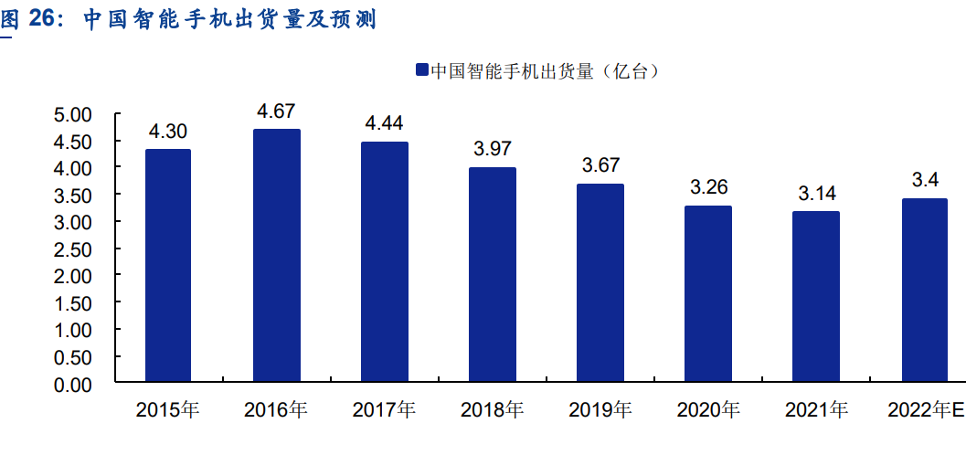 从国内市场方面来看,目前我国已成为全球最大的手机产品生产和消费市场。2020年我国智能手机出货量为3.26亿台,2021年我国智能手机出货量为3.14亿台,预计2022年全年我国智能手机出货量将达到3.4亿台。(IDC、CINNOResearch等数据)。