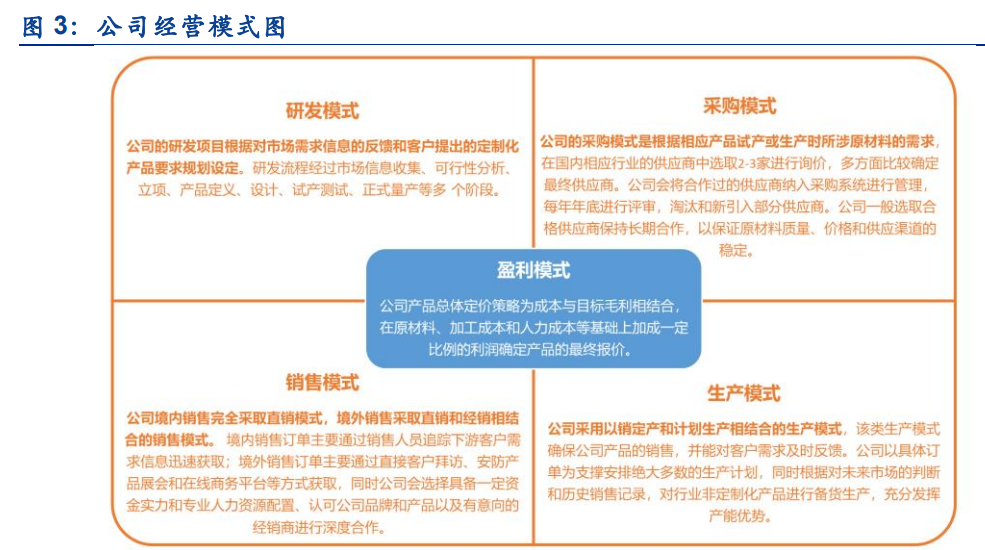 经过多年积累,公司形成符合自身发展路径的研发模式、采购模式、生产模式、销售模式和盈利模式,并对全球市场进行深度布局,建立广泛的销售网络,基于不同客户属性和业务价值,构建多元化的客户体系,通过安防展会营销、客户实地拜访、电话与邮件接洽等方式开拓市场,客户遍布全球多个国家和地区。