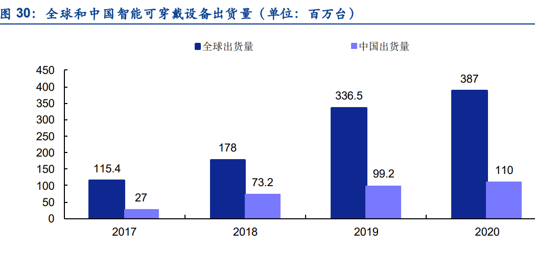 2.2.2.可穿戴设备市场:2020全球智能可穿戴设备出货3.87亿台,增长仍将保持