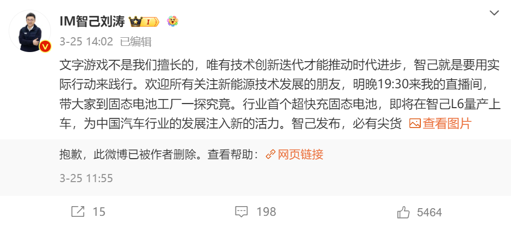 比亚迪赵总说,半固态车用电池是文字游戏。智己刘总则反驳说,不擅长文字游戏,要用实际行动来践行。