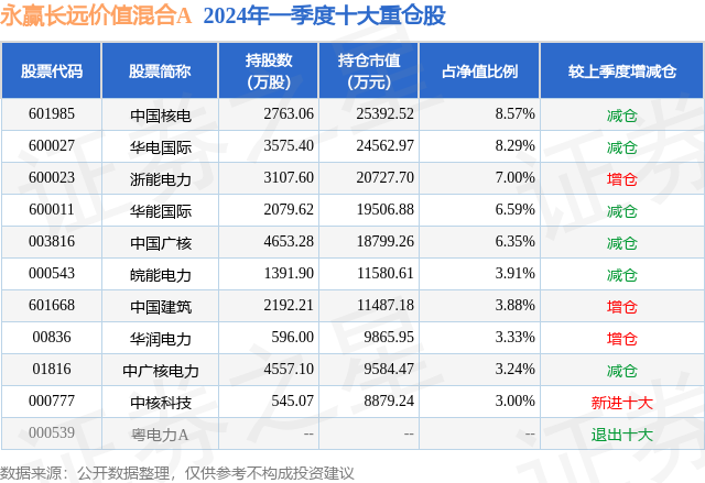 永赢长远价值混合A的前十大重仓股如下: