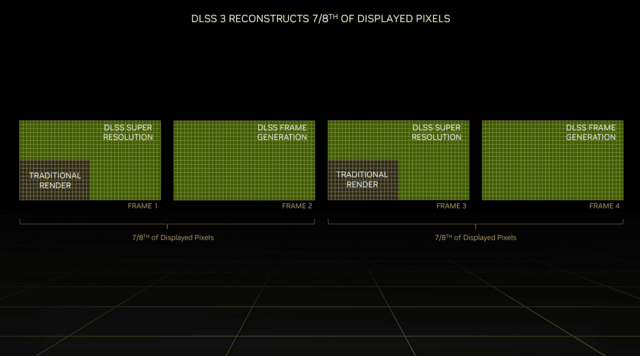 DLSS3结合了DLSS超分辨率、DLSS帧生成和NVIDIAReflex这三大技术,能够重建八分之七的像素,极大提高性能。