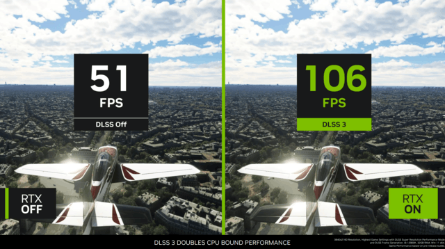 另外由于DLSS3的帧生成是在GPU中处理和运行的,所以即使遇到CPU瓶颈的游戏,AI同样能够提升帧率。这也是为什么在此次发布会中说到,DLSS3能够突破CPU的限制来提升帧数。