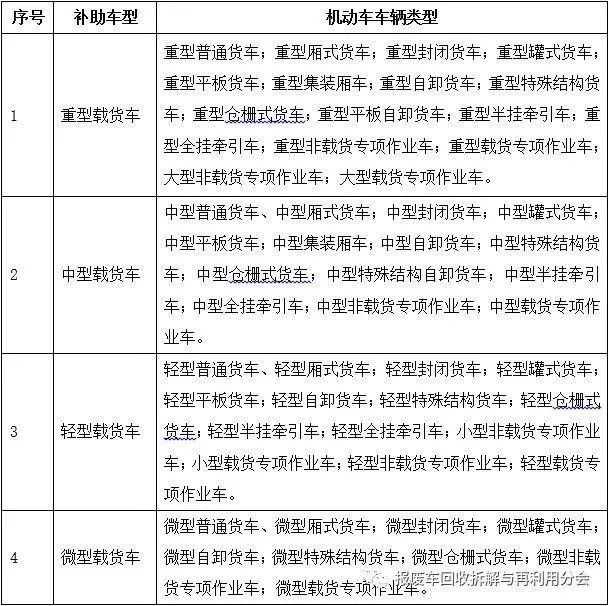 注:以上补助均为一次性补助。车辆类型以公安交管部门登记数据为准,并参照附表《老旧车提前淘汰奖励补助车型与机动车注册登记类型对应表》执行。