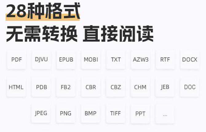 Poke5阅读器还在支持28种常用阅读格式,在常见的PDF阅读场景下,支持PDF重排,自动裁边;自定义字体,排版字号;双指触控可放大缩小以及PDF自动去水印等功能。