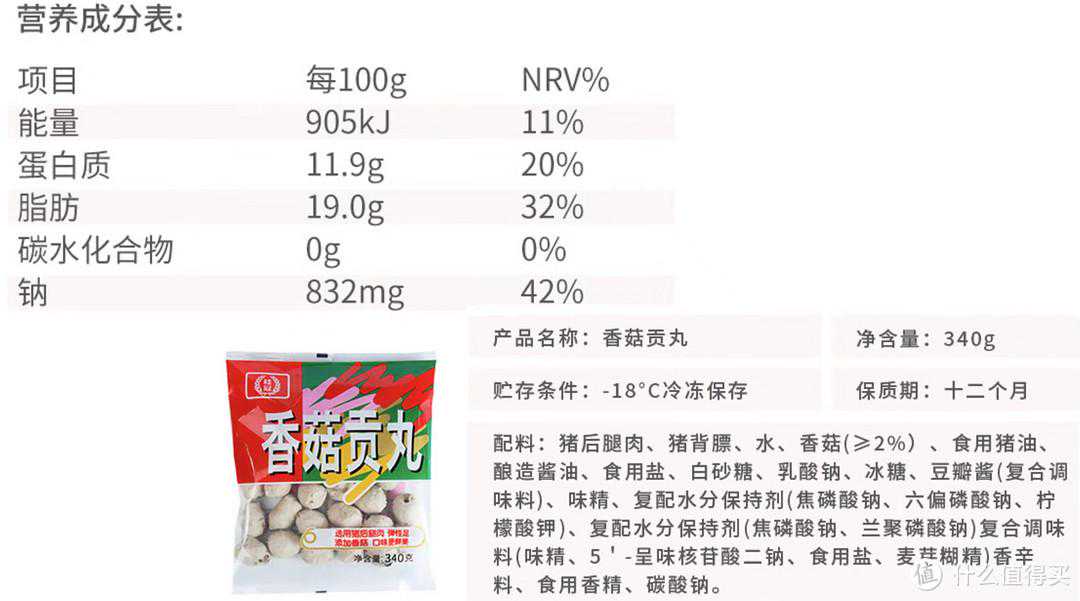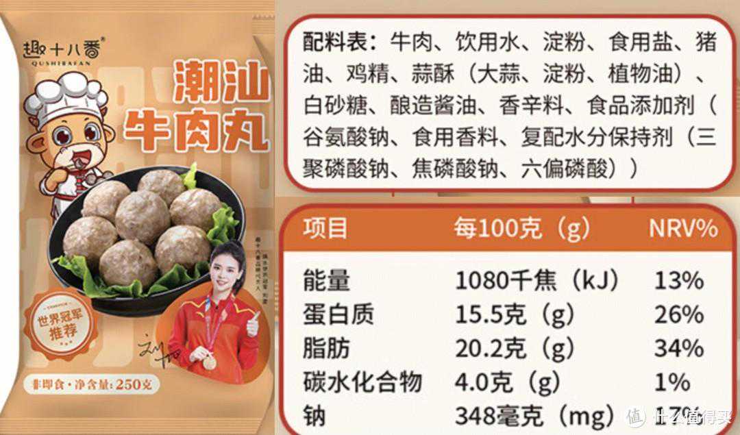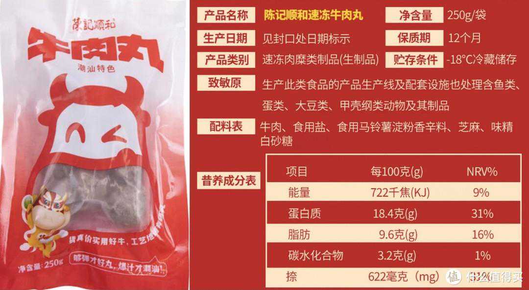 2.优质的肉丸一般会标出纯肉占比;