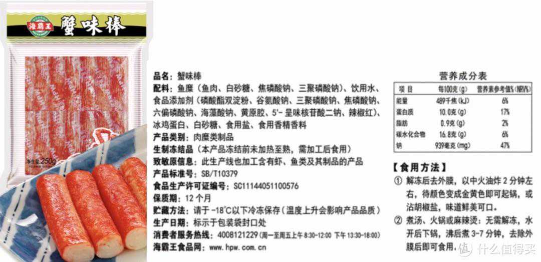 里面具体有多少鱼肉,同样也是没规定的,这类制品最常见的执行标准是行业标准《冻鱼糜制品》(SC/T3701-2003),其中规定产品里的淀粉含量≤15%(除了模拟蟹肉要求淀粉含量≤10%),并没规定鱼糜要放多少。