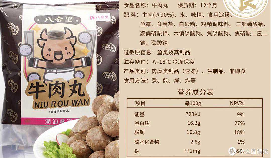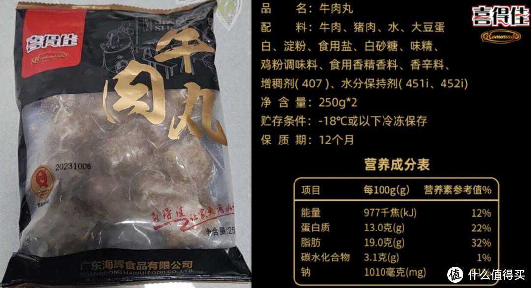 牛肉丸口感正宗,肉含量≥90%。脂肪和钠含量比较高,但是这个价格还要啥自行车?
